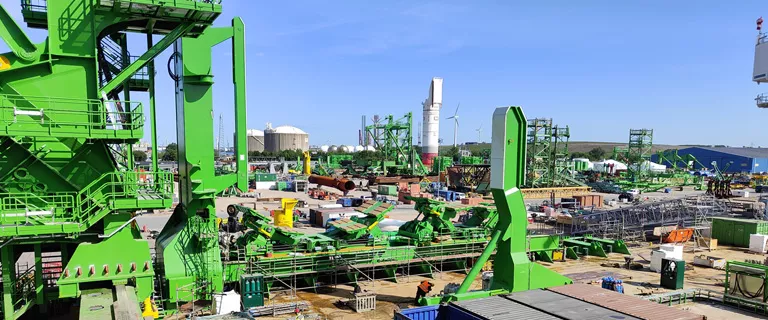 The 24 x 16.5 m pontoon is featuring a moon pool and 200 t hydraulic winch installation with containerized power pack for handling large gravity anchors.