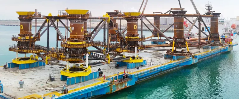 APT Global Marine Offshore Engineering (APT), UAE proudly announces the successful fabrication and delivery of two number Pre-Piling template for their prestigious client-DEME Offshore. This milestone underscores our commitment to delivering cutting-edge products that meet the evolving needs of our clients.Offshore substation foundations installation in its initial stage will need to have the pin piles installed on the seabed. This execution will be performed using the self-levelling piling template which will be deployed overboard from a floating vessel into its designated location at the seabed. The piling template shall serve the following purposes: