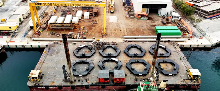 The fabricated components were loaded on board a transport barge using our Shore cranes and towed to the Shipyard where the final installation on to the Jack-up was performed.